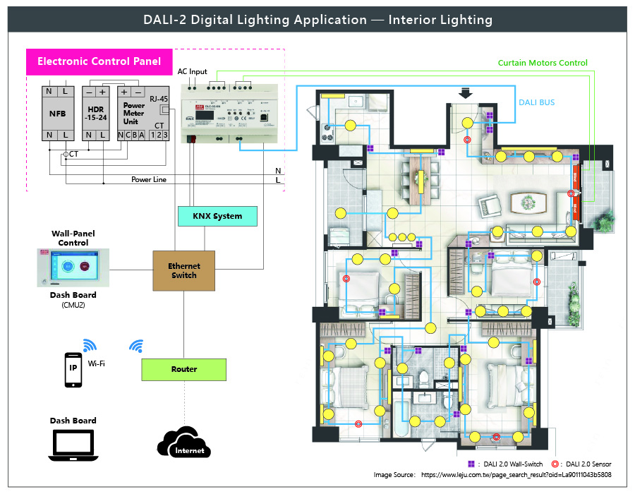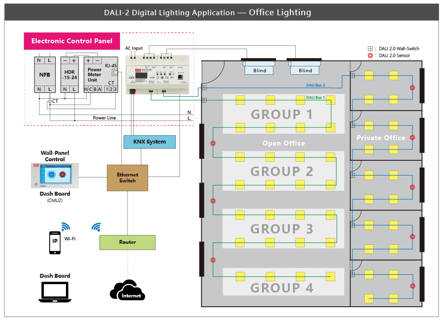 With the market trend of 5G and smart home applications, the digital lighting system and building automation have attracted more attention and how to effectively integrate all the lighting systems of buildings or smart homes at the same time and combine the control into a building automation system, will be a key feature and advantages. MEAN WELL has Stepped into the (BA) building automation system, in addition to providing KNX building automation products, officially launched the new digital lighting controller, the DLC-02 series, capable of controlling the DALI Digital lighting system, and the KNX complies with the DALI-2 regulations. DLC-02-KN (KNX to DALI Gateway) effectively integrates into the KNX building automation system; the installer can choose the suitable product according to the scale of the area.